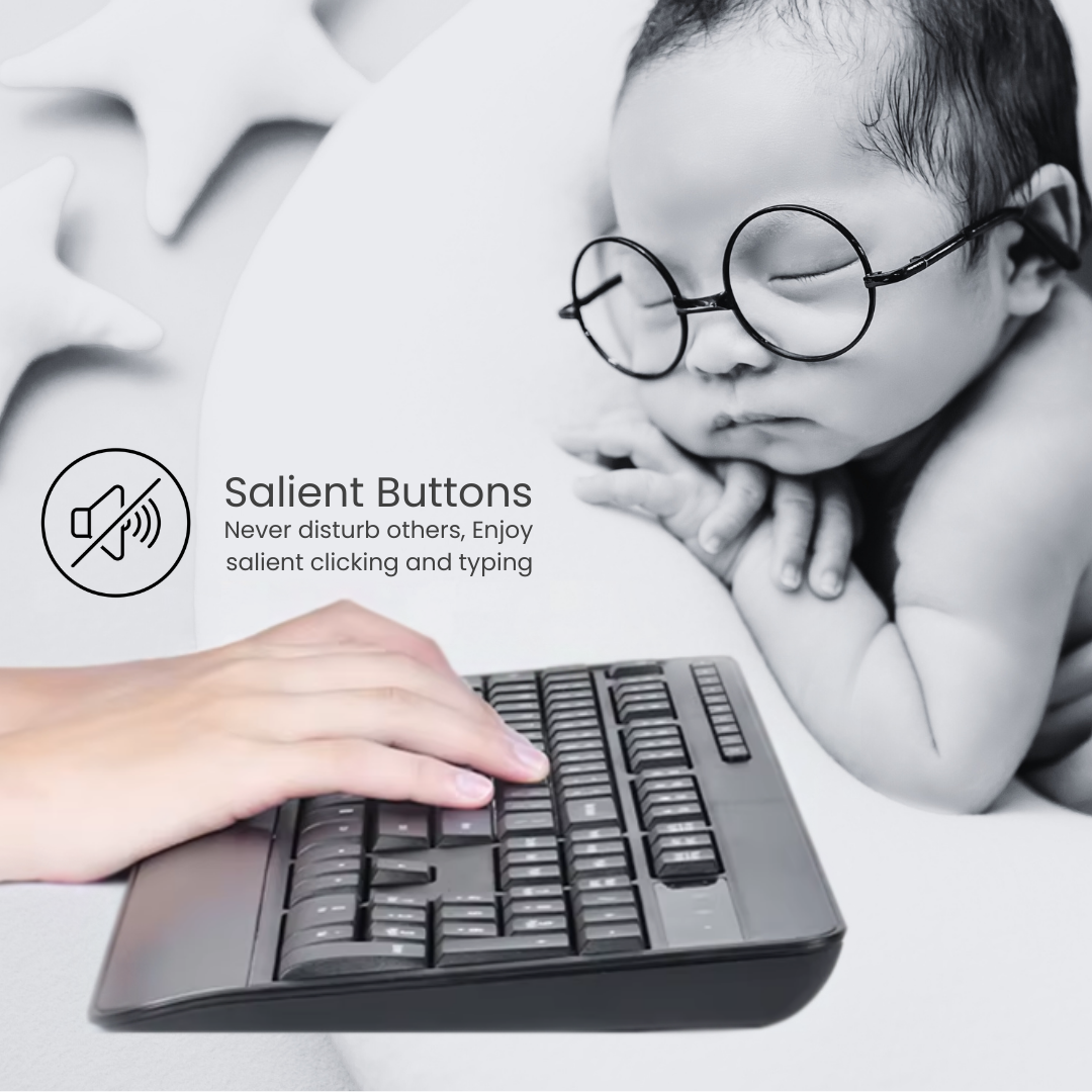 - Quiet & Salient Buttons: Enjoy a peaceful work environment with a mouse that features quiet, responsive buttons and a keyboard designed for silent typing, reducing noise distractions and enhancing focus.