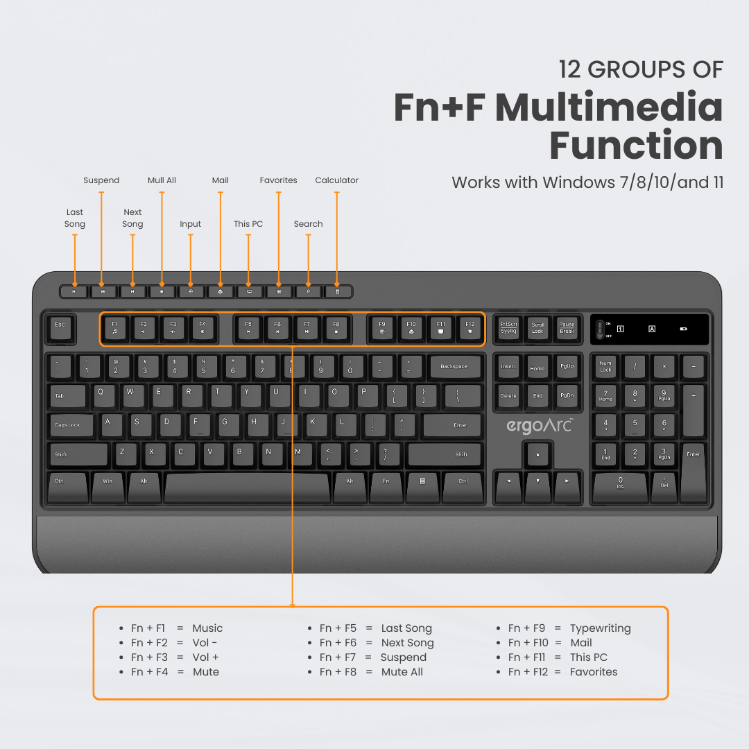 - Full-Sized Keyboard: Features a spacious key layout with dedicated function keys, numeric keypad, and comfortable key spacing for effortless typing and productivity.