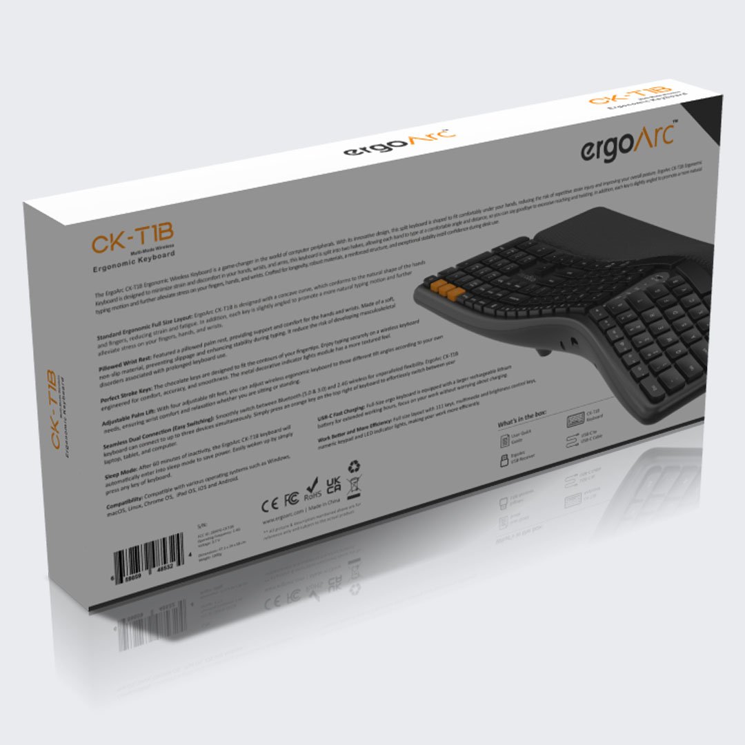 The ergoArc® CK-T1B Ergonomic Wireless Keyboard is a game-changer in the world of computer peripherals. With its innovative design, this split keyboard is shaped to fit comfortably under your hands, reducing the risk of repetitive strain injury and improving your overall posture.