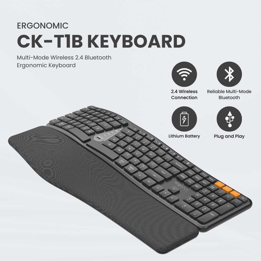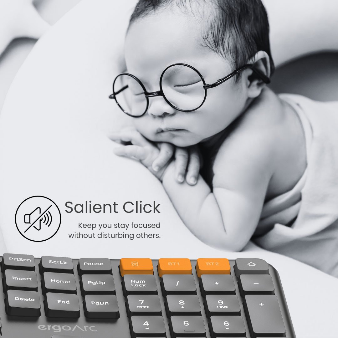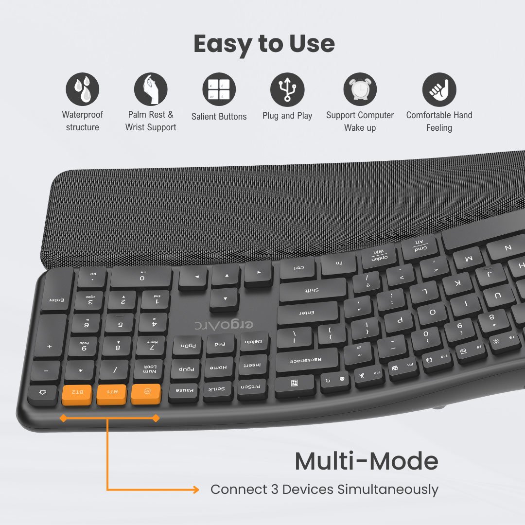 - Seamless Dual Connection (Easy Switching): Smoothly switch between Bluetooth (5.0 & 3.0) and 2.4G wireless for unparalleled flexibility. ErgoArc CK-T1B keyboard can connect to up to three devices simultaneously. Simply press an orange key on the top right of keyboard to effortlessly switch between your laptop, tablet, and computer.