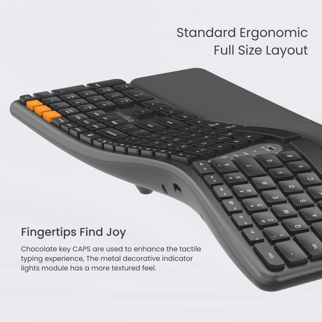 - USB-C Fast Charging: Full-Size ergo keyboard is equipped with a larger rechargeable lithium battery for extended working hours, focus on your work without worrying about charging.