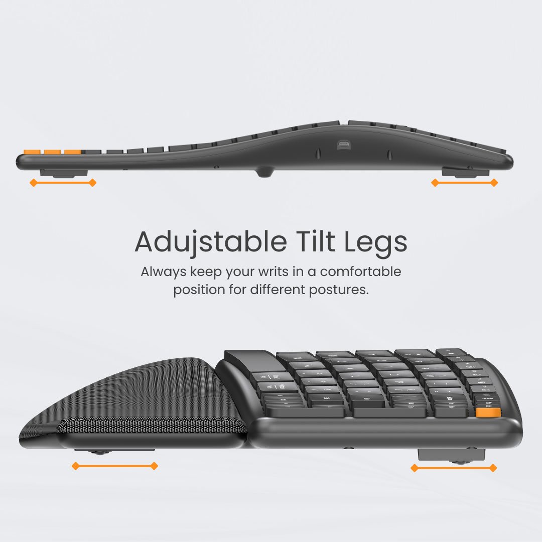 - Adjustable Palm Lift: With four adjustable tilt feet, you can adjust wireless ergonomic keyboard to three different tilt angles according to your own needs, ensuring wrist comfort and relaxation whether you are sitting or standing.